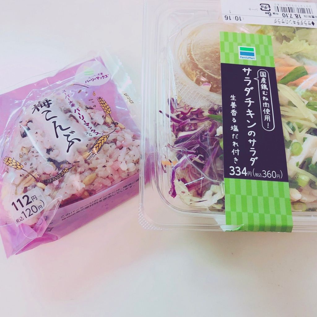 買ったサラダとおにぎりは🥗🍙お家へお持ち帰りしました😅